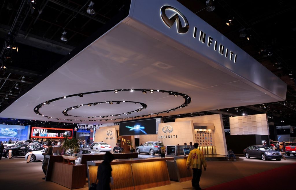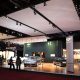 Overhead trade show ceiling fabric for stretched ceilings over exhibitions, trade show booths, museum displays and retail installations. IFR Meltout diffuses light and in the event of a fire, meltable seams every 12″ along the length of the fabric open allowing smoke to escape and water from sprinklers to come through.